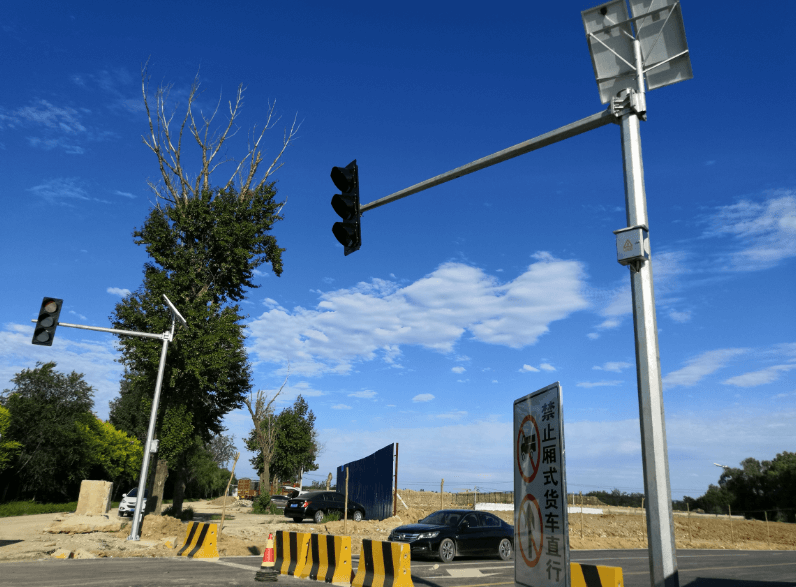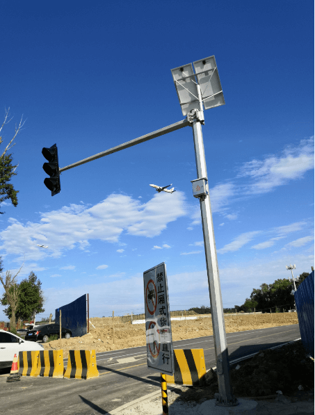 北京順義區(qū)首都機場外圍擴建,新修路段安裝23套紅綠燈安防監(jiān)控桿,由于此路段不便走地下線,故此本次設計全部為太陽能光伏發(fā)電,紅綠燈監(jiān)控桿安裝完成后將為機場周圍居民提供出行便利條件。