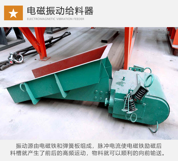 電磁式給料器:振動源由電磁鐵和彈簧板組成,脈沖電流使電磁鐵勵磁后,料槽向后運動,同時在彈簧板的作用力下,料槽就產生了前后的高頻運動,是物料可以順利的向前輸送。