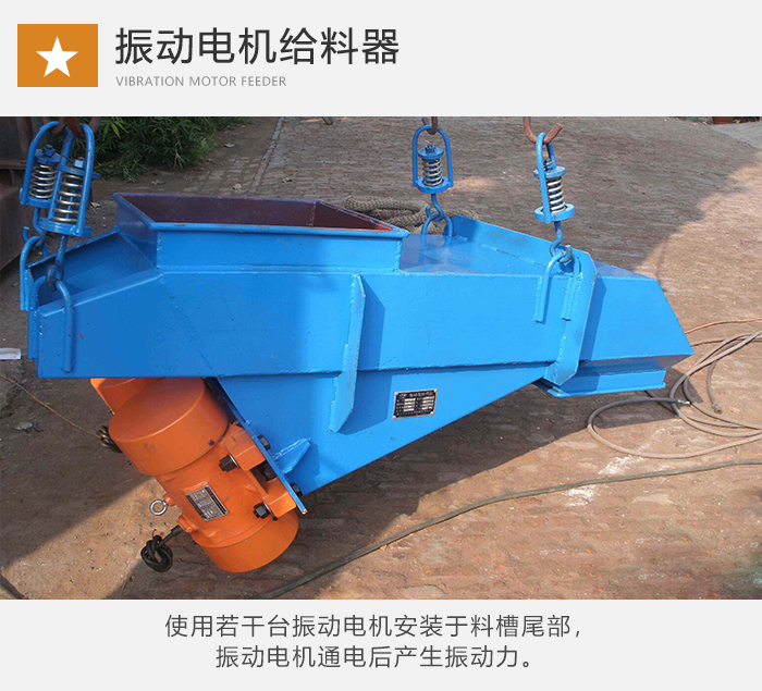 振動電機式:使用若干臺振動電機安裝于料槽尾部,振動電機通電后產生振動力。