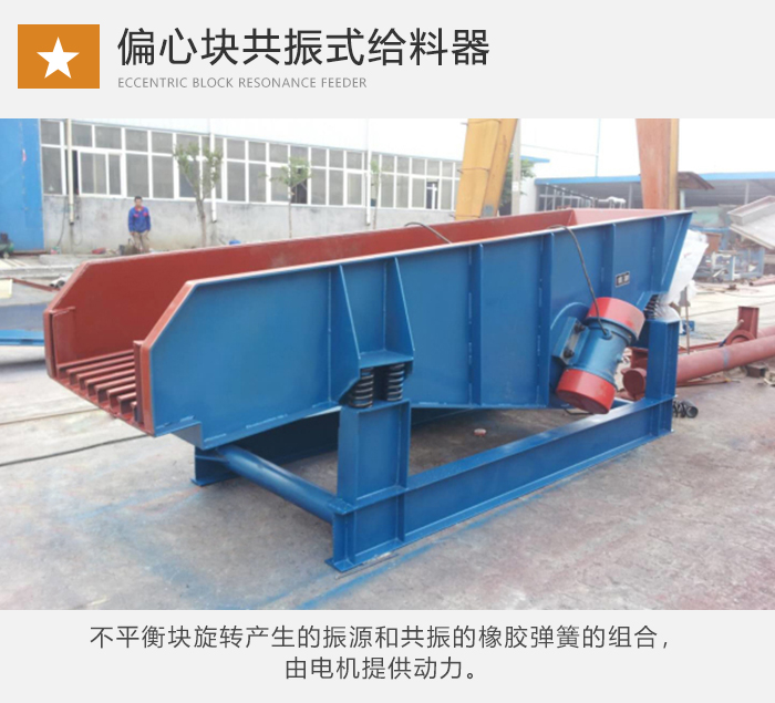 偏心塊共振式:不平衡塊旋轉產生的振源和共振的橡膠彈簧的組合,由電機提供動力。這種形式需要的驅動力即電機的功率較小,但可以達到更大的振動力。采用這種形式的只有日本神鋼的RFH型橡膠彈簧給料器。